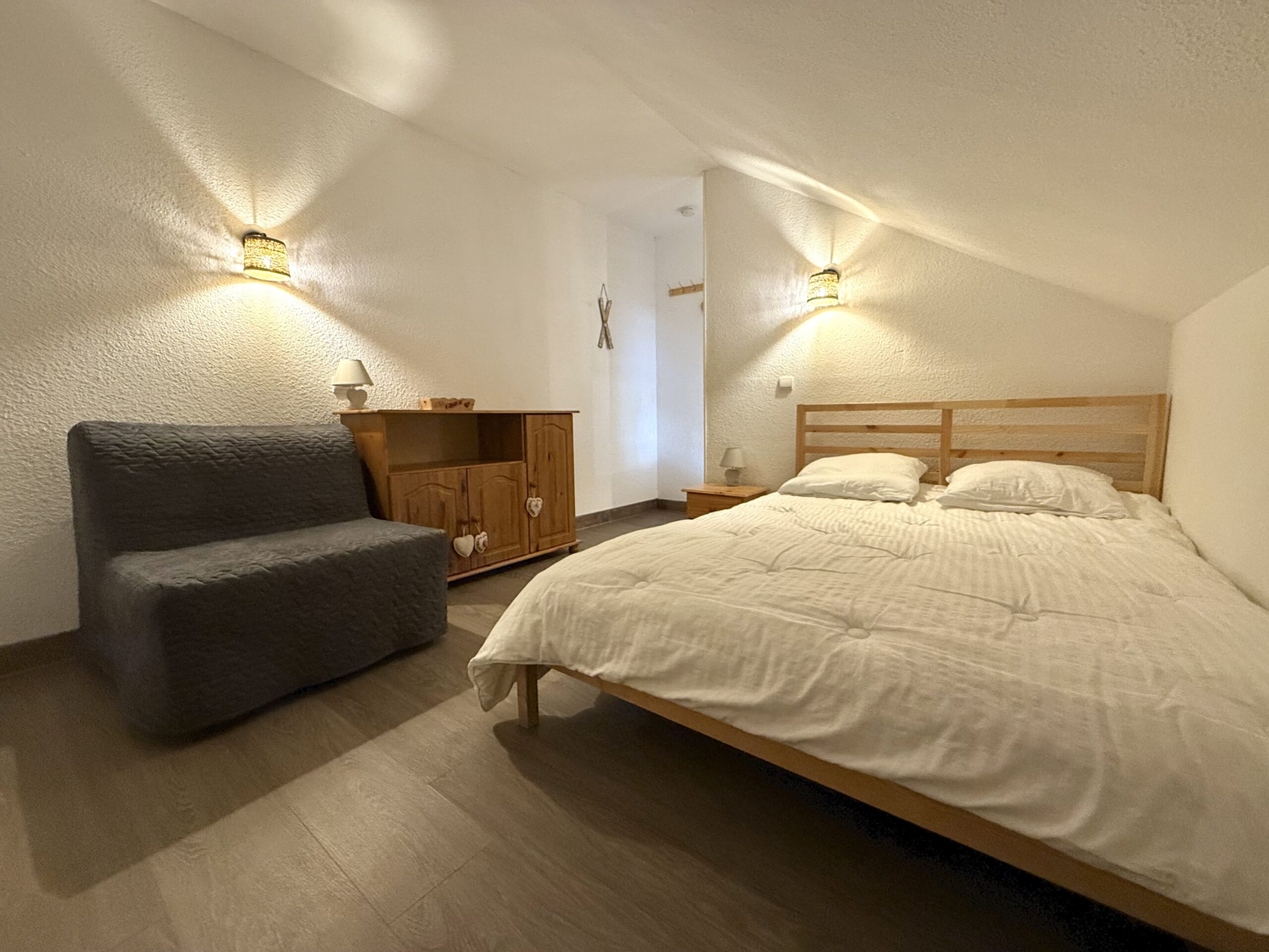 - Sur la mezzanine, un lit double ainsi qu’un lit d’appoint