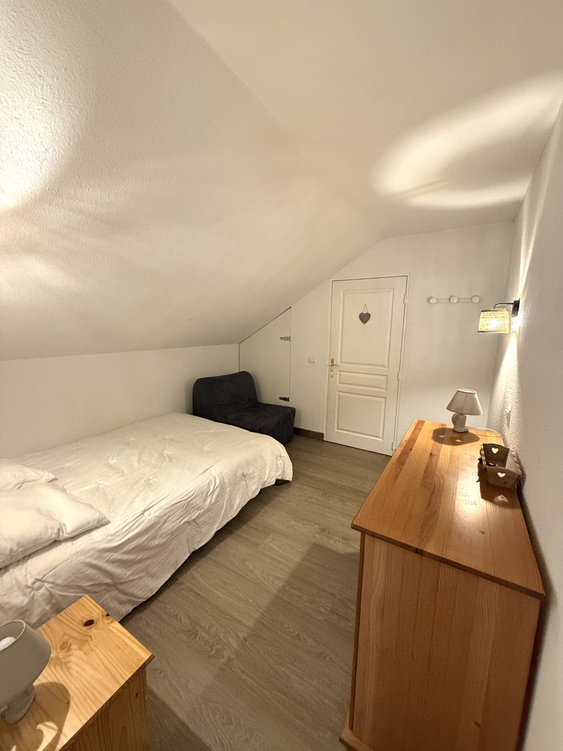 - 1 chambre avec un lit double (140×200) superposé d’un lit simple (90×190)